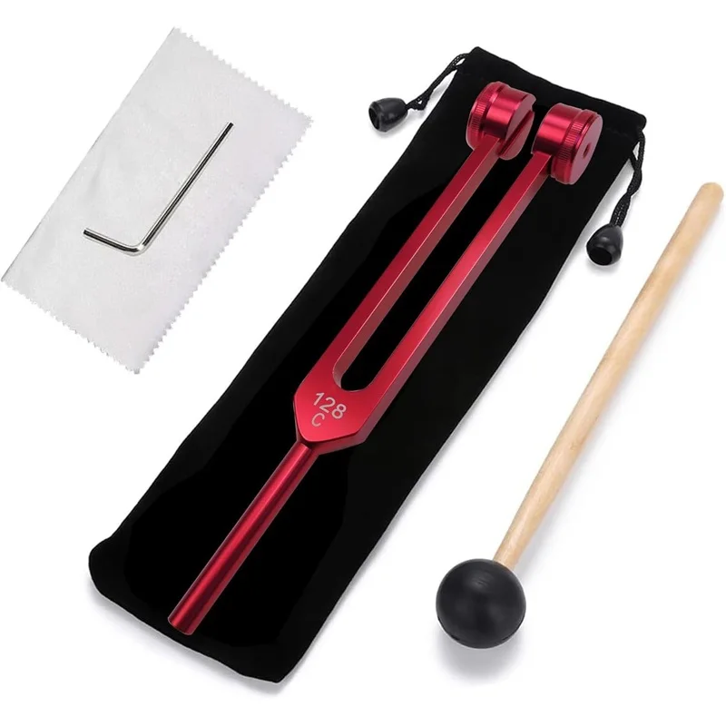 The tuning fork set features a high frequency of 128 Hz, ideal for sound therapy and stress relief. Its distinctive tone can help align your chakras and promote overall wellness.