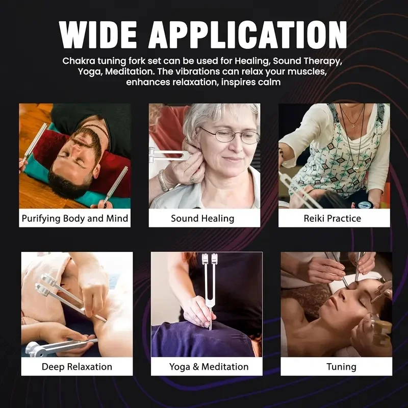 • Chakra Healing :These tuning forks are excellent tools for chakra balancing and healing. The specific frequency of each fork can help unblock energy flow and promote overall harmony in your life.