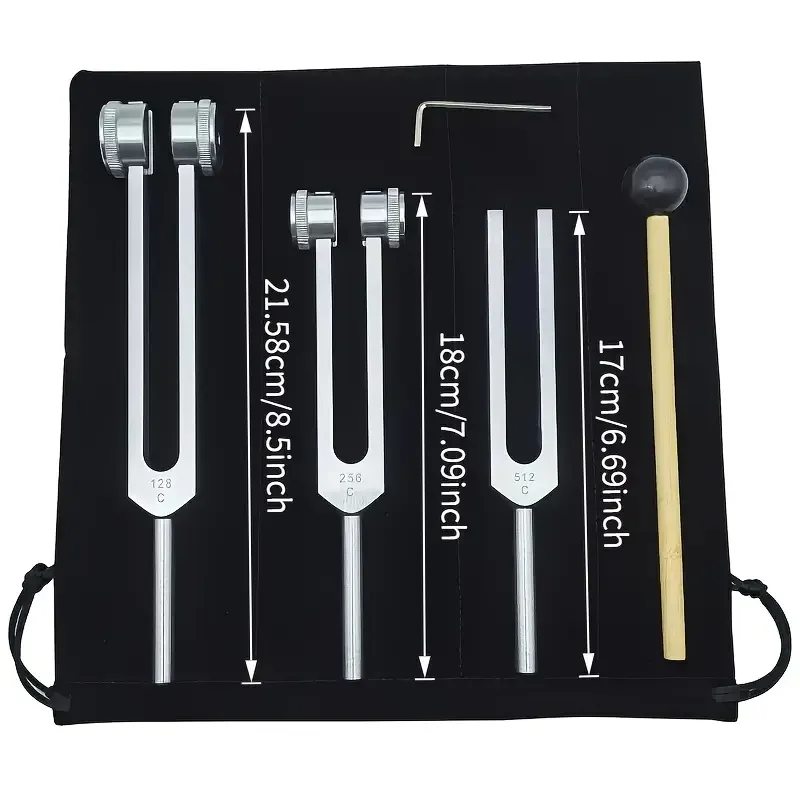 • High Frequency Tuning Fork :The tuning fork set features a high frequency of 128Hz, 256Hz,512Hz, ideal for sound therapy and stress relief. Its distinctive tone can help align your chakras and promote overall wellness.